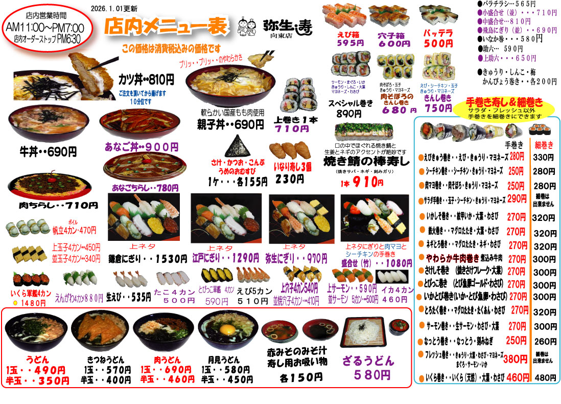 店内メニュー表